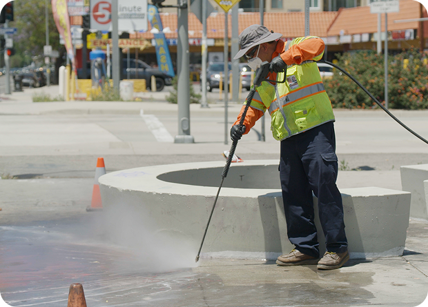- Gum removal and pressure washing in pedestrian-heavy areas such as Hollywood and DTLA