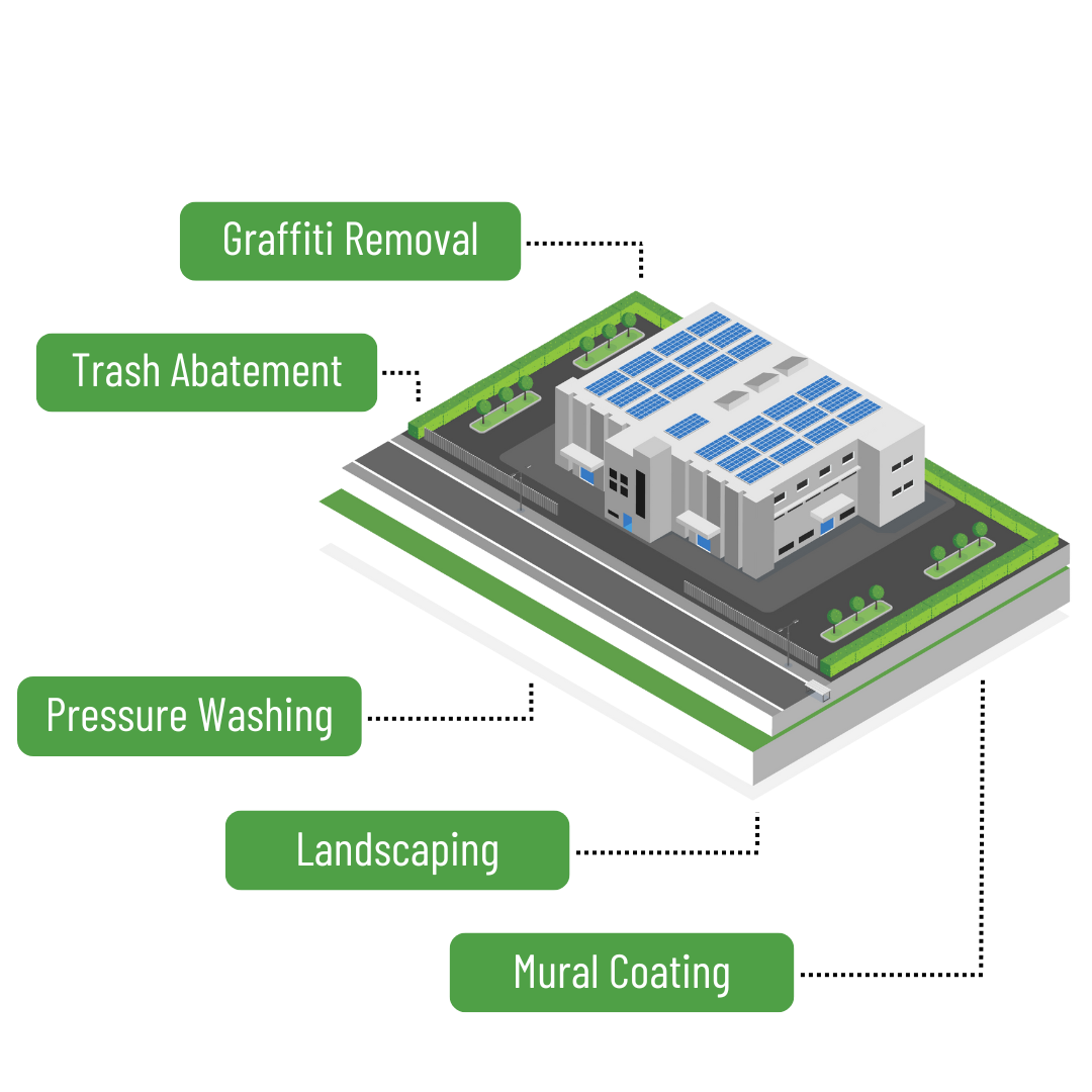 Industrial properties operate under constant pressure. Equipment moves in and out, crews are on the clock, and the margin for error is small. But while operations may be focused on what’s happening inside the facility, the exterior plays a critical role in how efficiently everything functions and how the site is perceived by clients, vendors, and regulatory officials. We help industrial sites stay clean, compliant, and ready for business. That means keeping entry points and loading areas clear of grime and buildup, maintaining tidy landscapes that don’t interfere with sightlines or access, and removing trash or overgrowth that can pose safety concerns. These spaces may be rugged by nature, but they still benefit from consistency, order, and care, especially in environments where precision and professionalism are non-negotiable. Our work supports the flow of day-to-day operations while helping protect the long-term image and integrity of the property. Because even in the most functional spaces, appearance still matters, and attention to detail goes a long way.